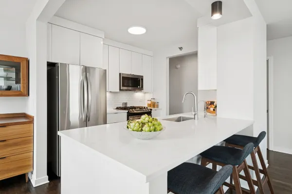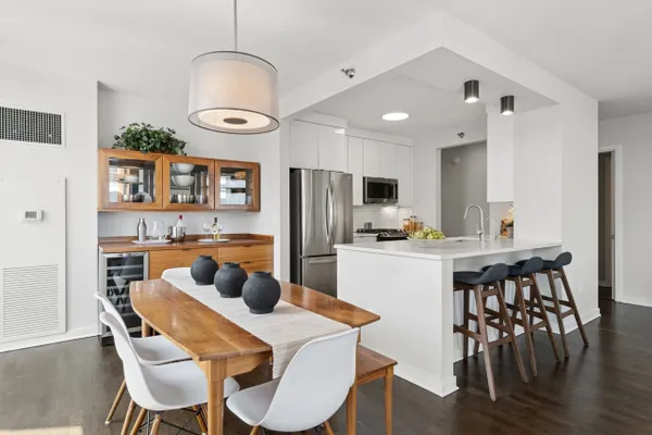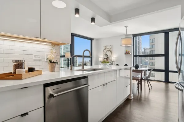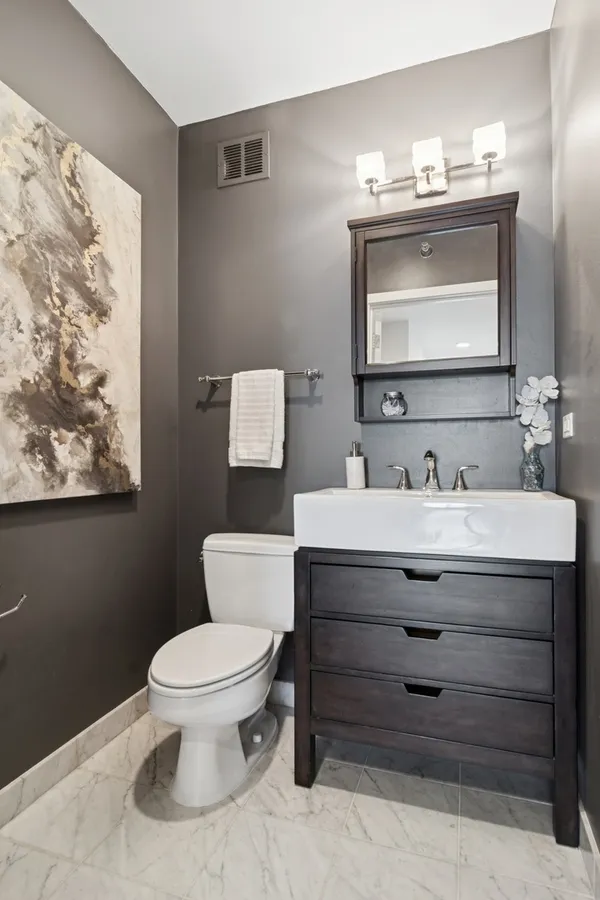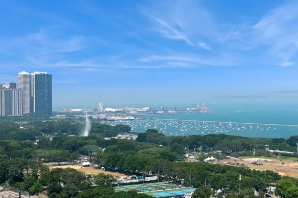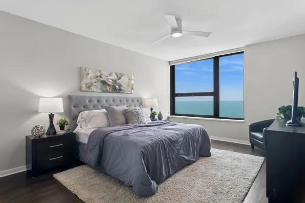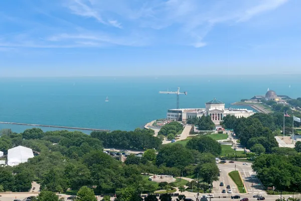 You will be captivated by the sweeping views of the Lakefront, Museums, Grant Park, Navy Pier and the skyline from every turn in this home. Spend the days gazing at the boats passing by while chilling on your East facing balcony or from your living room perched high in the sky with SE corner windows! This incredible unit and floorplan leaves nothing to be desired with a proper foyer entry to greet you, a bonus powder room for maximum convenience and privacy, 2 primary suites (what?!), a thoughtfully opened up & remodeled kitchen, a separate dining room and tons of storage throughout. The sleek & modern kitchen showcases flat panel cabinetry, quartz tops & breakfast bar for additional seating. The separate dining room is ideal for entertaining and gathering with custom built ins that offer extra serving space & storage including wine cooler. Wake up to the beautiful sunrises over the Lake from your spacious main bedroom suite and then make your way into the updated marble bathroom with Euro height double vanity & honed counters, separate shower, Jacuzzi tub and additional built in storage. The enormous, organized walk in closet will make you the envy of all of your friends! Chef's kiss! The newly refinished hardwood floors throughout are simply stunning. This home drenched in sunlight, high in the sky, truly offers amazing views in every direction including a surprise view of the river, bridges and other vistas that will provide interest and enjoyment each and every day. Building offers 24 hr door staff, dog run, business center, a penthouse exercise room with views plus a fabulous club room with attached sundeck. Unbeatable South Loop location in the heart of it all! Garage parking 30K